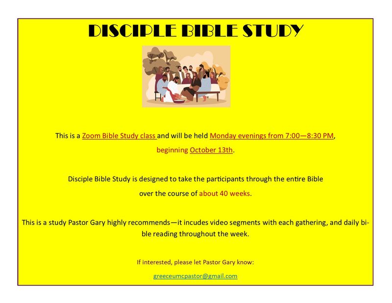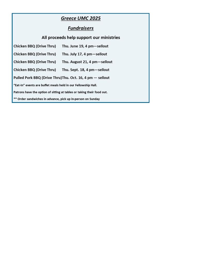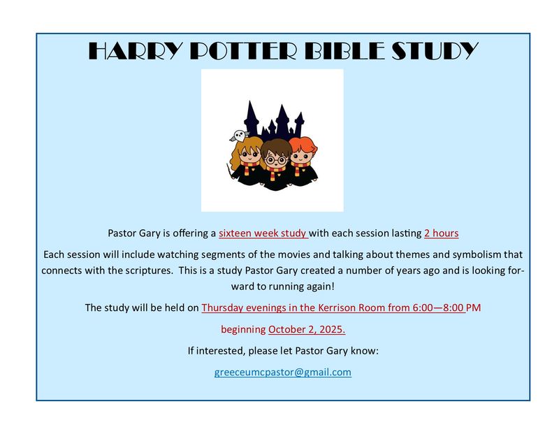Our contact info is: greeceumc@frontiernet.net & 585-225-1880.